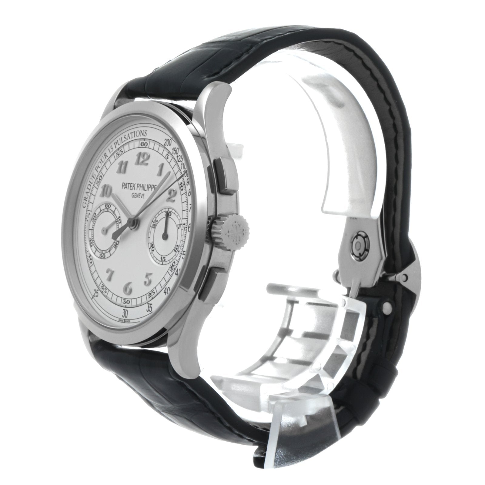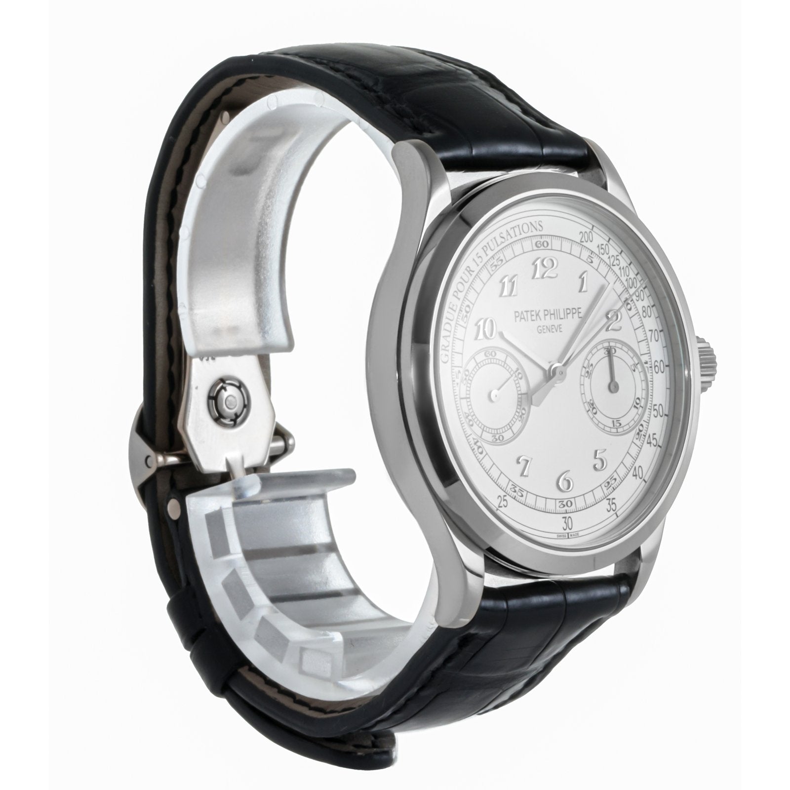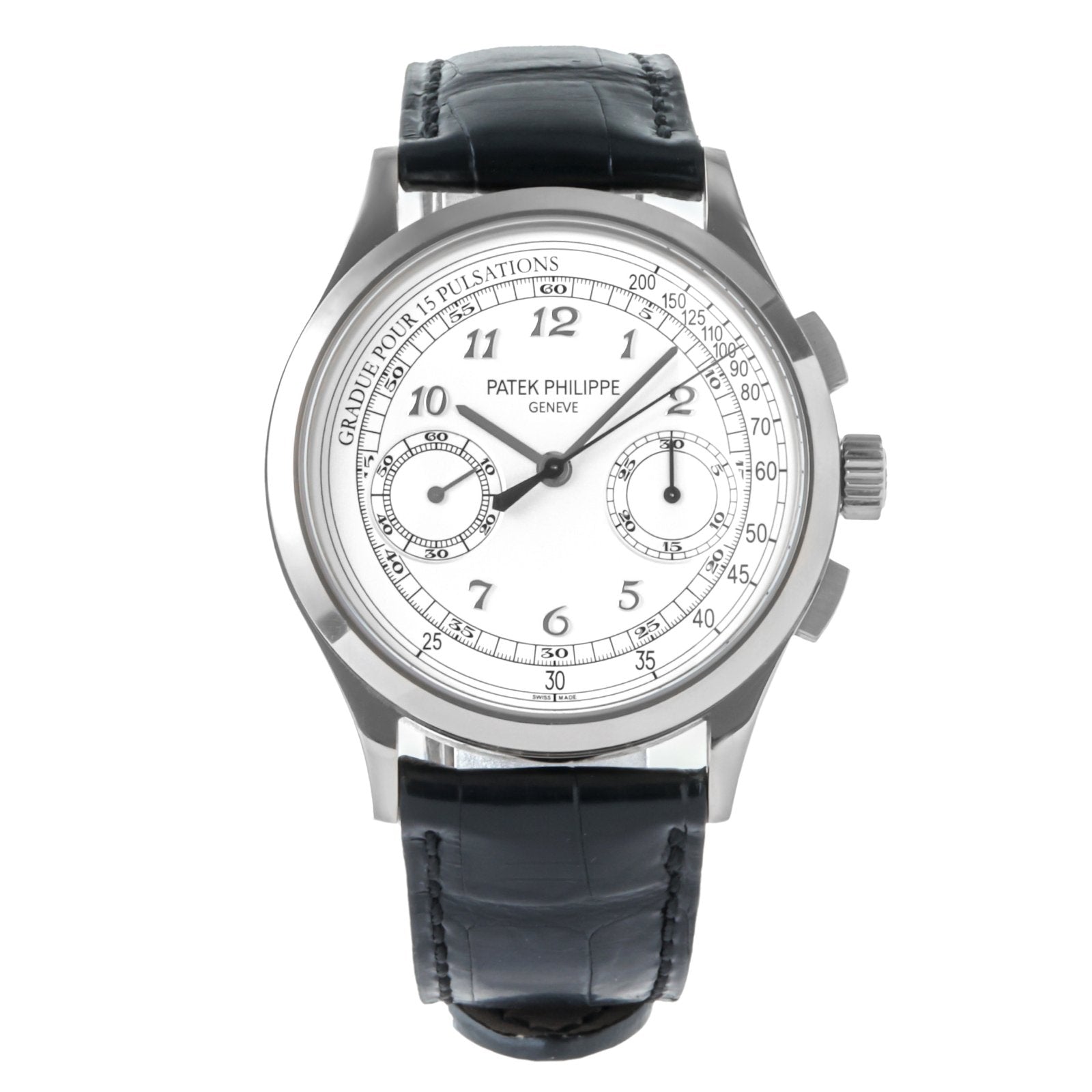 The Patek Philippe Ref. 5170G-001 is a masterclass in classical watchmaking, representing the pinnacle of Patek Philippe’s chronograph expertise. Crafted in 18k white gold, this manually wound timepiece draws from the brand’s rich heritage while showcasing refined aesthetics and technical brilliance. With its clean white dial, elegant Breguet numerals, and in-house chronograph movement, the 5170G-001 stands as a tribute to timeless elegance and mechanical purity.