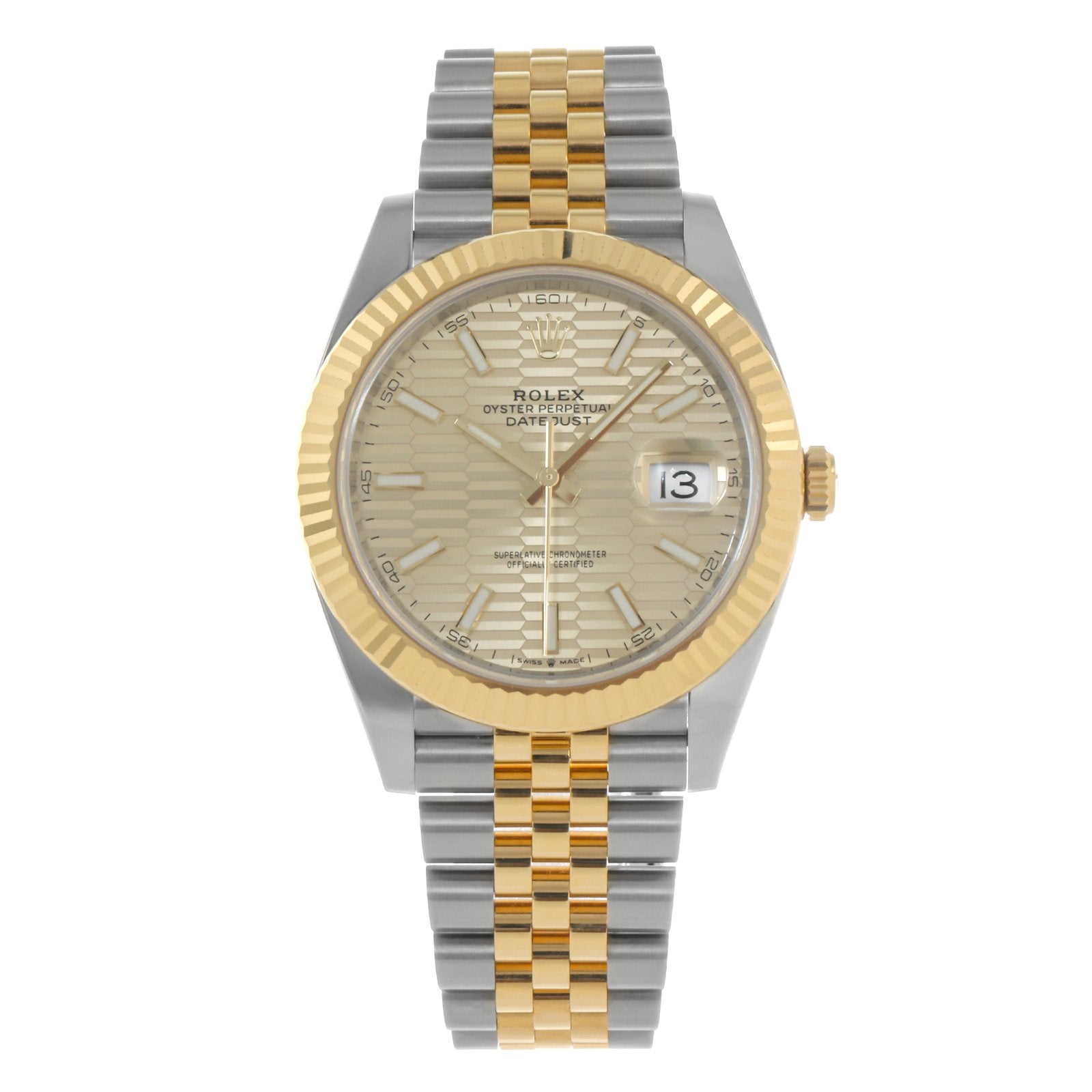 The Rolex Datejust 126333 with its radiant Champagne Motif Dial is a distinguished expression of classic elegance and Rolex’s timeless design language. As a cornerstone of the Datejust collection, this model harmoniously blends luxurious materials with sophisticated detailing, offering a watch that exudes presence and prestige.