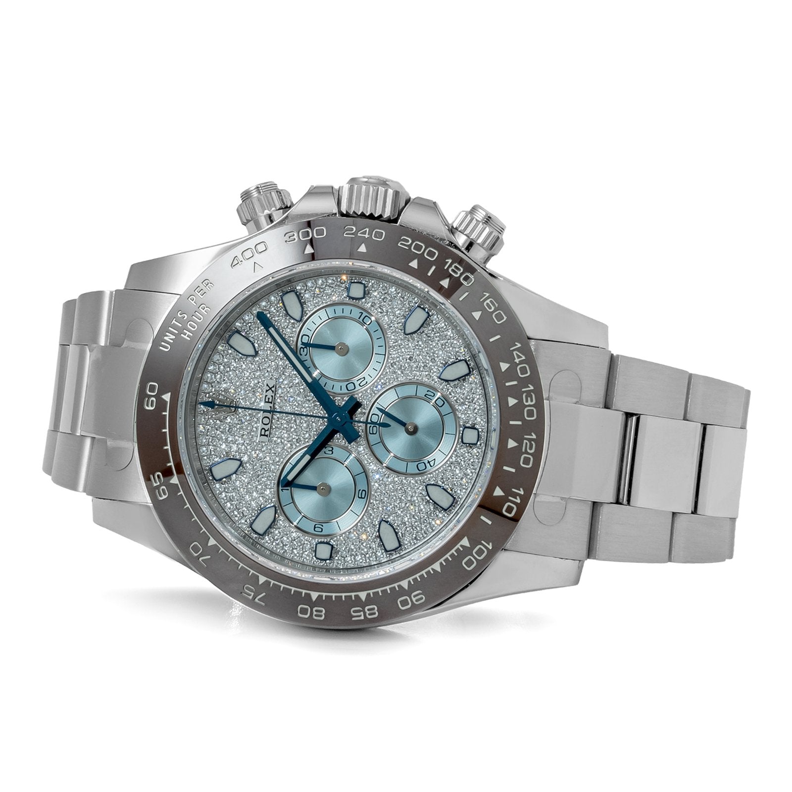 The Rolex Daytona 116506 with a diamond dial is an exquisite timepiece that elevates the iconic Daytona collection to new heights of luxury and sophistication. This model masterfully combines high-performance functionality with stunning aesthetics, making it a standout choice for discerning collectors and watch enthusiasts.